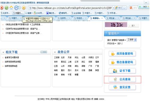打开工信部网站:www.miitbeian.gov.cn ,点击“公共查询”。