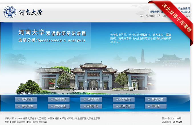 河南大学双语示范课程——化学化工学院波谱分析