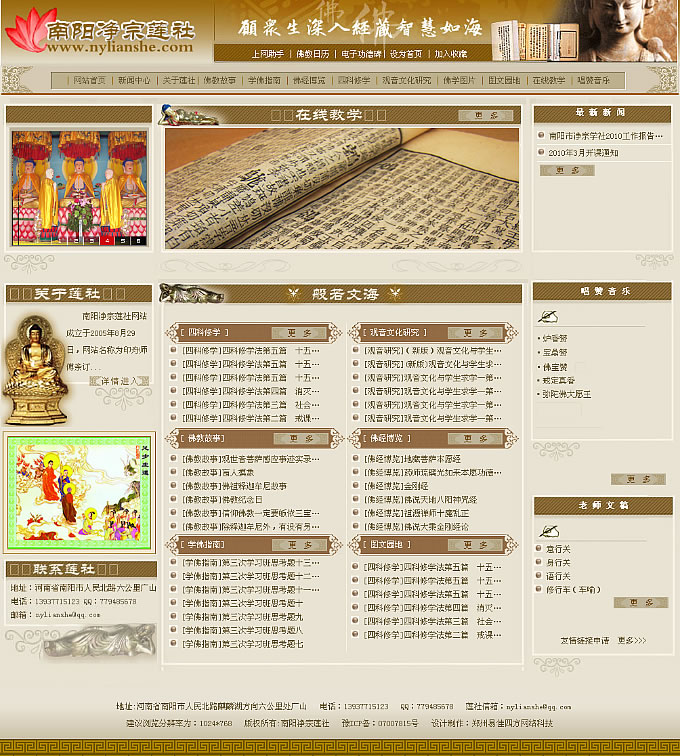 南阳净宗莲社网站成立于2005年8月29日,网站名称为印舟老师亲订。其中有不少同修的大力支持与帮助,实为网站的幕后大功德主!特别是技术方面得到了南召同修的大力帮助,在此一并感恩曾经为网站付出心血的各位大德!