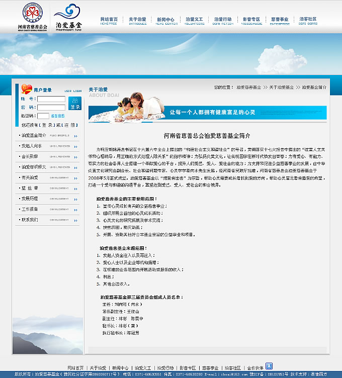 为响应胡锦涛总书记在十六届六中全会上提出的“构建社会主义和谐社会”的号召,贯彻落实十七大报告中提出的“注重人文关怀和心理疏导,用正确的方式处理人际关系”的指示精神;为弘扬炎黄文化,让传统国学在新时代焕发出青春;为有爱心、有能力、有实力的社会各界人士搭建一个奉献爱心的平台,提升人们爱己、爱人、爱社会的能力;为支持和促进公益慈善事业的发展,由中华炎黄文化研究会副会长、社会和谐问题专家、心灵学学者向水先生发起,经河南省民政厅批准,河南省慈善总会泊爱慈善基金于2008年5月正式成立。泊爱慈善基金以“把爱传出去”为宗旨,帮助心灵需要成长者找到爱的方向,帮助心灵富足者传播爱的希望,打造一个爱与和谐的沟通平台,冀望达到爱己、爱人、爱社会的和合境界。