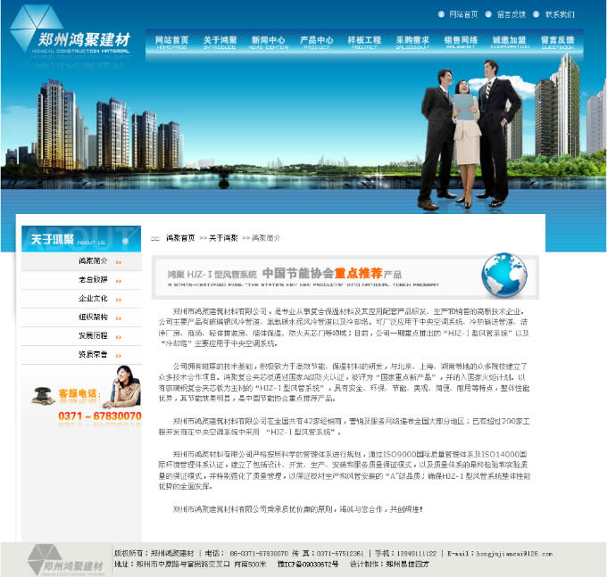 郑州市鸿聚建筑材料有限公司,是专业从事复合保温材料及其应用配套产品研发、生产和销售的高新技术企业。公司主要产品有玻璃钢风冷管道、氯氧镁水泥风冷管道以及冷却塔。可广泛应用于中央空调系统、冷热输送管道、洁净厂房、商场、轻体拼装房、墙体保温、防火夹芯门等领域;目前,公司一期重点推出的“HJZ-Ⅰ型风管系统”以及“冷却塔”主要应用于中央空调系统。